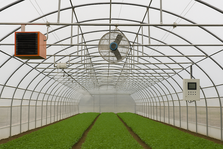 La calefacción permite aumentar la temperatura interna del invernadero durante los meses fríos, evitando que los cultivos sufran estrés térmico o detengan su crecimiento.